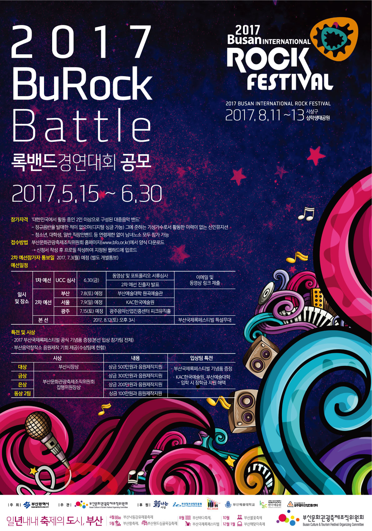 기타 2017 부산국제록페스티벌 록밴드 경연대회 &39;BUROCK BATTLE&39; 공고