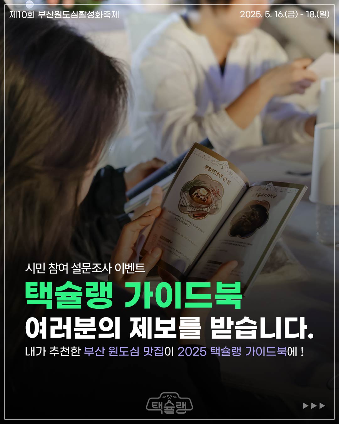 택슐랭 축제에서 만나볼 수 있는 부산 원도심의 다양한 미식과 숨은 명소 등 ! 원도심의 매력을 한 권에 담아낸 원도심 가이드북 입니다.⠀