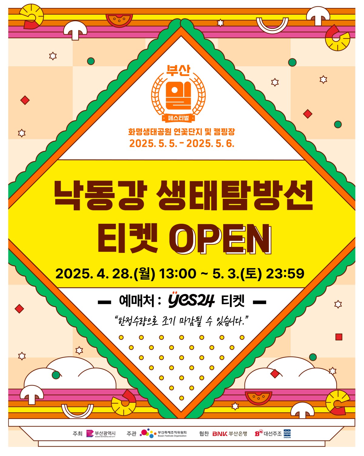 목록 [2025 부산 밀 페스티벌] 낙동강 생태탐방선 티켓 OPEN! 페이지 정보 작성자 최고관리자 조회 155회 작성일 2025.04.26 본문 이전글 [2025 부산 밀 페스티벌] 평상힐링존 티켓 OPEN! 25.04.27 목록 다음글 [2025 부산 밀 페스티벌] 체험프로그램 티켓1차 OPEN! 25.04.22