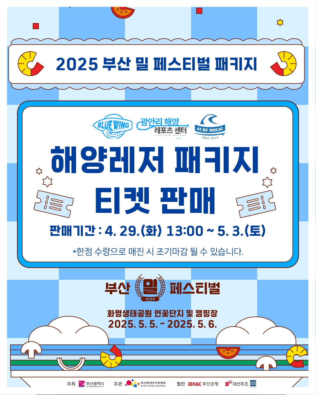목록 [2025 부산 밀 페스티벌] 해양레저 패키지 티켓 판매! 페이지 정보 작성자 최고관리자 조회 126회 작성일 2025.05.01 본문 이전글 [2025 부산 밀 페스티벌] 티켓 구매 인증 EVENT! 25.05.01 목록 다음글 [2025 부산 밀 페스티벌] 평상힐링존 티켓 OPEN! 25.04.27
